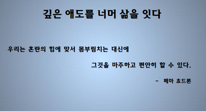 충분히 상실을 슬퍼하고, 그 상실의 바닥에서 만나는 새로운 관계 즉 희망을 가져가도록 돕는 것이어야 한다고 생각한다.